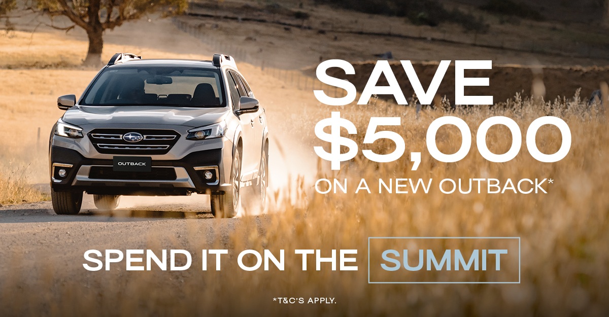 *MY25 Subaru Outback Recommended Retail Price (RRP) is $49,990. MY25 Subaru Outback X Recommended Retail Price (RRP) is $54,990. MY25 Subaru Outback Touring Recommended Retail Price (RRP) is $59,990. MY25 Subaru Outback XT Recommended Retail Price (RRP) is $64,990. MY25 Subaru Outback XT Touring Recommended Retail Price (RRP) is $69,990. Offer: Purchase a new Subaru Outback for only $44,990, Subaru Outback X for only $49,990, Subaru Outback Touring for only $54,990, Subaru Outback XT for only $59,990 or Subaru Outback XT Touring for only $64,990 saving $5,000 off standard RRP. Offer excludes fleet, lease, government, and rental buyers. All prices include GST and exclude accessories and on road costs. Any resale or conditions of sale set out or indicated herein are a recommended retail price only. Offer is only available on vehicles purchased between 1 January 2026 and 31 March 2026 or while stocks last at Morrell Motors. Subaru® reserves the right to vary, withdraw or extend this offer. Offer not available in conjunction with any other special, discount or promotional offer
